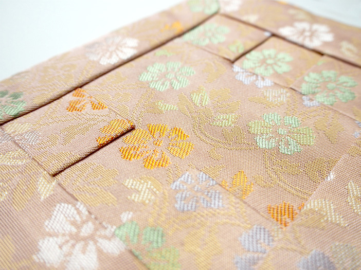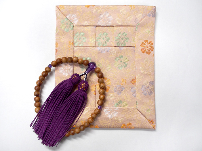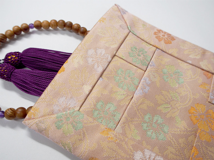数珠入れは、お念珠をもち運ぶための袋ものとしてだけでなく、お念珠を机や畳の上に置く際に下に敷いて頂くためのものでもあります。お念珠の"座布団"としてのお道具…だから『座具』と、こういう理由です。