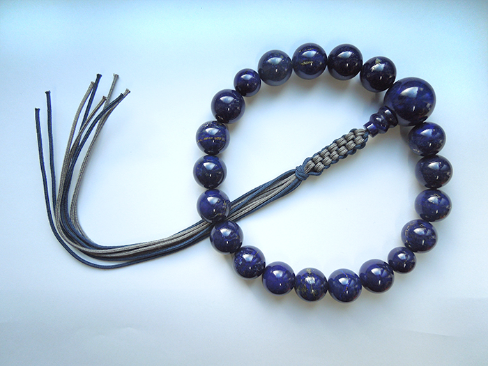 ラピスラズリ18玉片手共仕立 鉄紺/銀鼠打紐(桐箱付き)