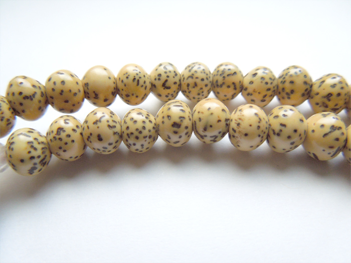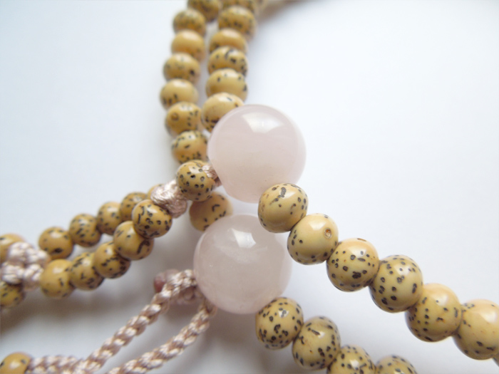 割れにくいお念珠です。また使うほどに色艶を増し、味わい深い色合いになります。 - 一般に流通している星月菩提樹の中には、無選定の玉を漂白し見目を揃えている品が多く見られます。