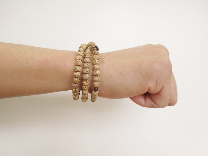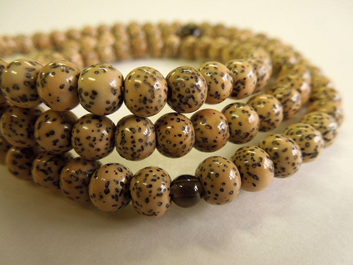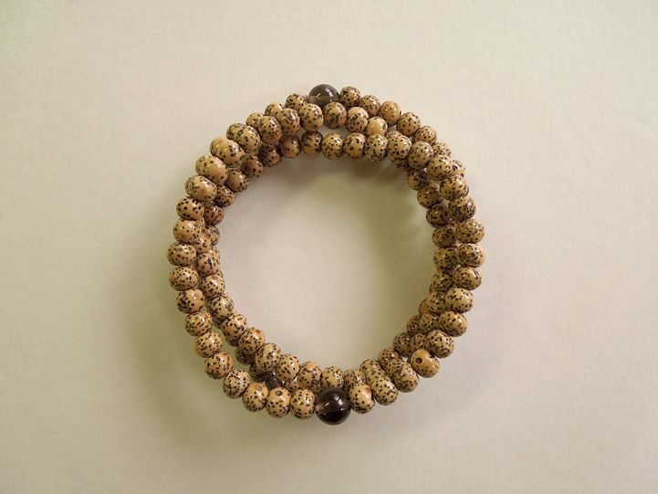割れにくいお念珠です。また使うほどに色艶を増し、味わい深い色合いになります。 - 一般に流通している星月菩提樹の中には、無選定の玉を漂白し見目を揃えている品が多く見られます。