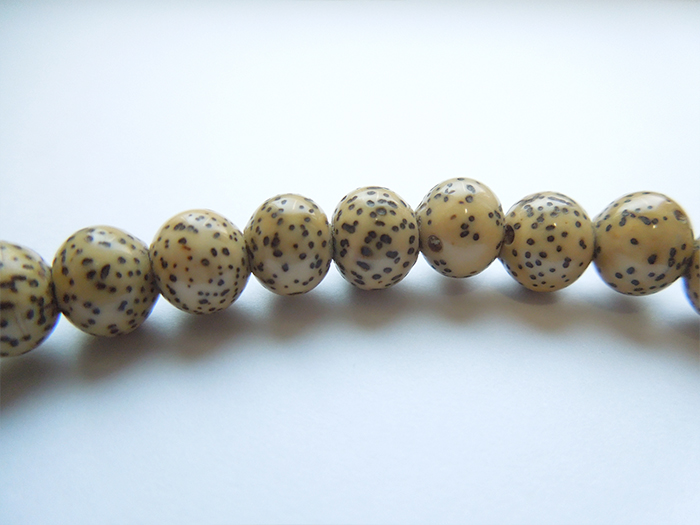 割れにくいお念珠です。また使うほどに色艶を増し、味わい深い色合いになります。 - 一般に流通している星月菩提樹の中には、無選定の玉を漂白し見目を揃えている品が多く見られます。